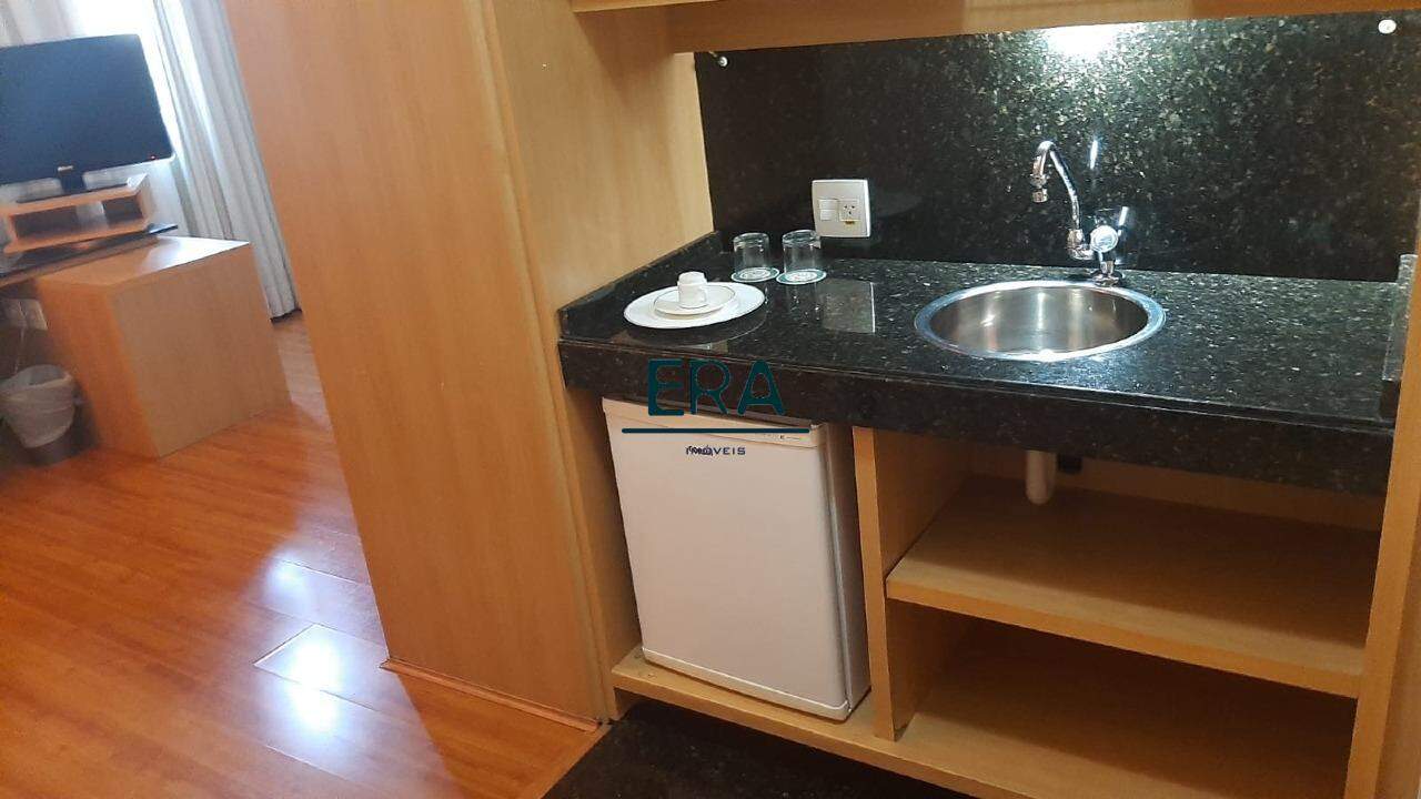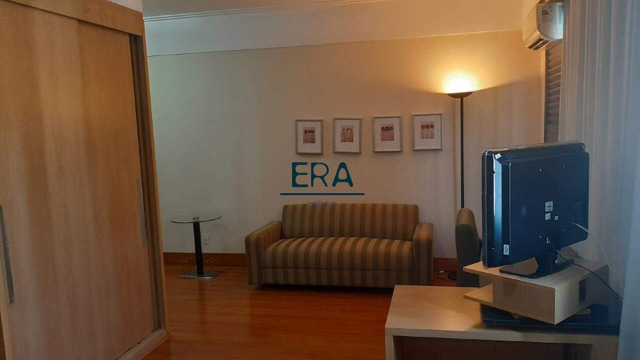 Apartamento com área interna de aproximadamente 30m², mobiliado e com piso laminado. Quarto e sala conjugados com ambiente para visitas e home, com copa e banheiro. Prédio com hall nobre, piscina, espaço fitness, sala de convenção, lavanderia cobrada a parte. Aceita animal de pequeno porte. Vaga livre para 1 veículo. Localização: Próximo Av. Alvares Cabral e Rua São Paulo.