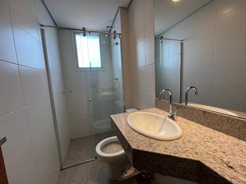 Na área íntima, são 3 quartos, sendo 1 suíte, com janelas com venezianas. O imóvel conta ainda com 3 banheiros e 1 lavabo.