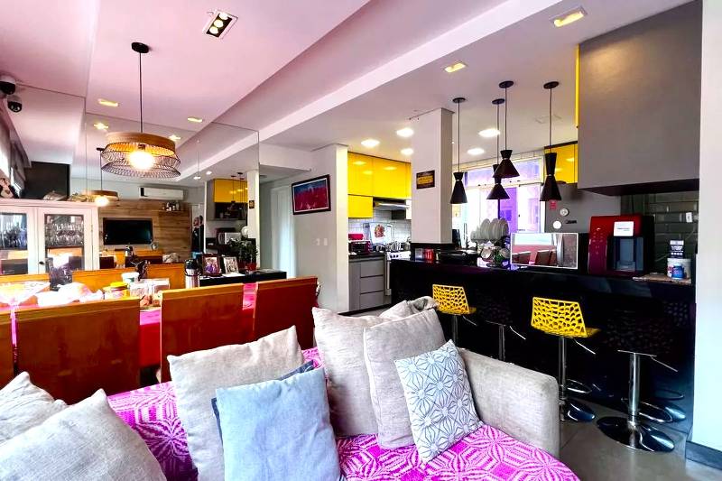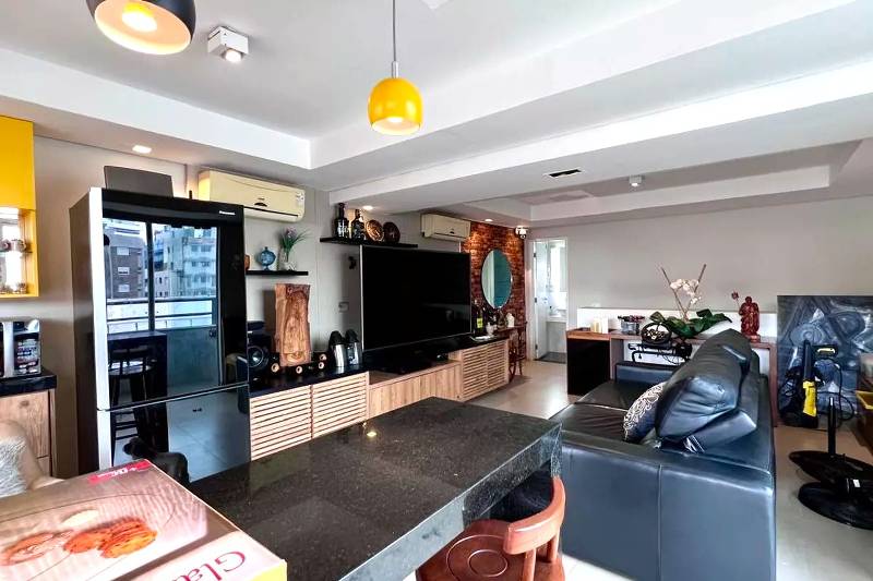 Sala de estar ampla com piso em porcelanato.