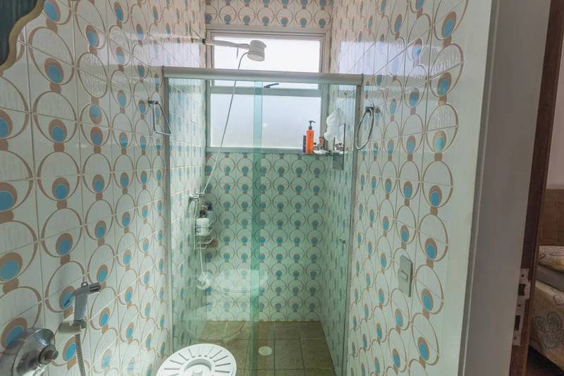 Banheiros (social e suíte) com ótimo acabamento em cerâmica, equipados com box em blindex, armários e espelhos.