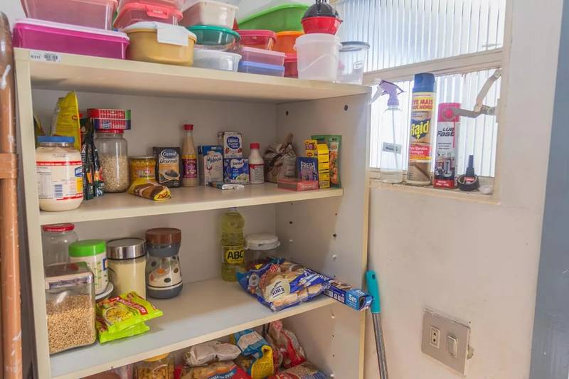 Cozinha funcional com armários planejados, bancada em granito e despensa.