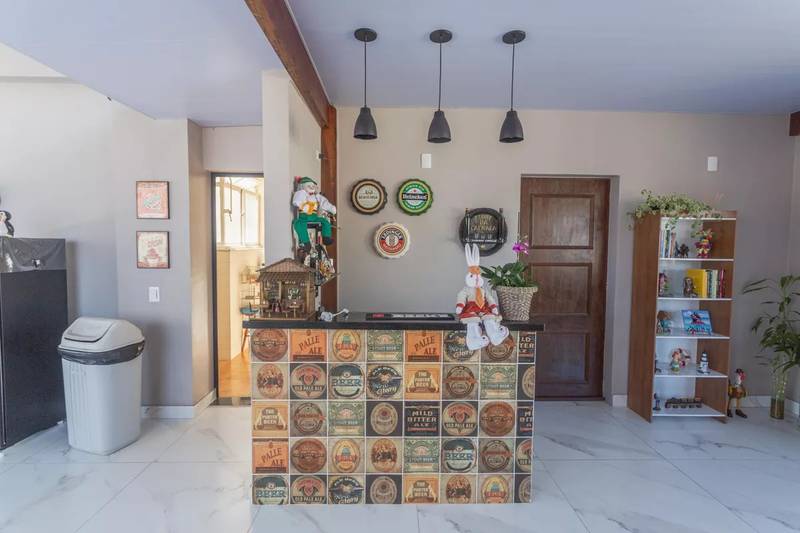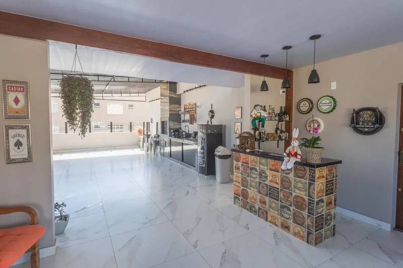 Espaço gourmet totalmente reformado e coberto, com churrasqueira revestida, pia e bancada em granito, além de uma vista definitiva para a cidade, proporcionando um ambiente perfeito para momentos de lazer e confraternização.