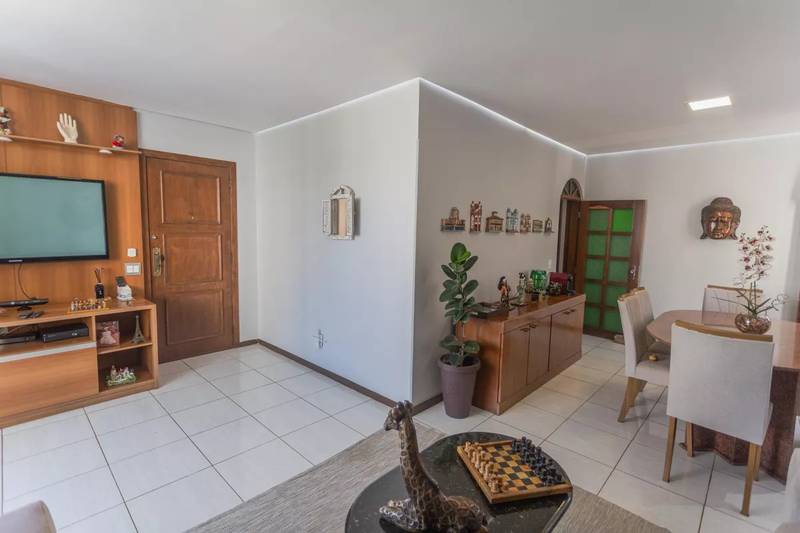 Sala ampla em “L” para 03 ambientes, com piso em cerâmica, teto rebaixado e sistema de iluminação planejada, além de varanda integrada, proporcionando excelente ventilação e iluminação natural.